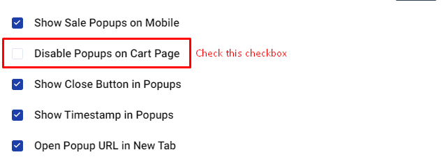 Step: 2 => Scroll down and check the Disable Popups on Cart Page checkbox (See the screenshot below).