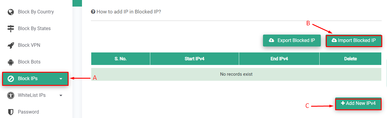 C) Now click on the Add New IPv4 In Black List button to add new IP.