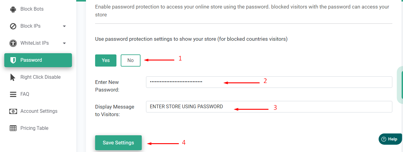 We have introduced a password protection feature, you can Enable Password Protection to access your online store using the password. Blocked visitors with the password can access your store.