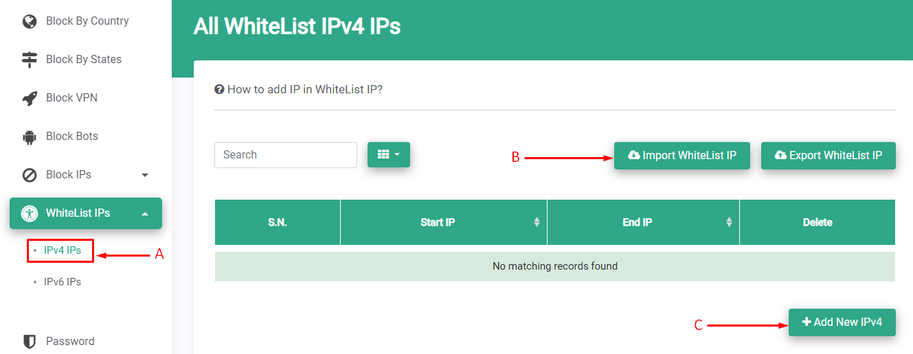 C) Now click on the Add New IPv4 In White List button to add new IP.