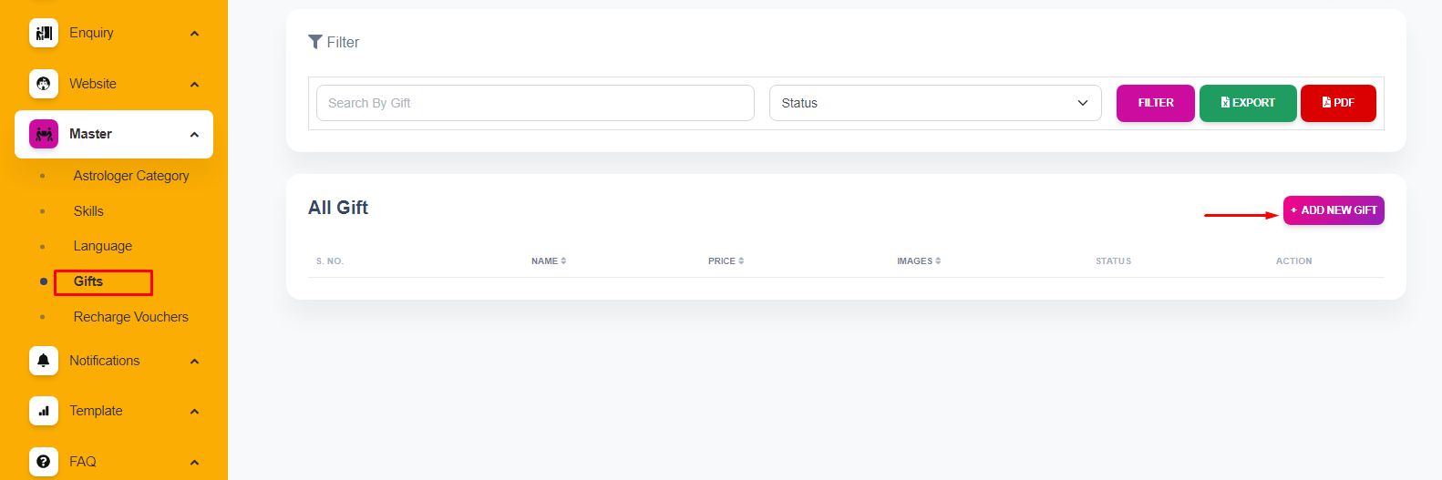 Go to the “Gift” option within the “Master” menu of the app.