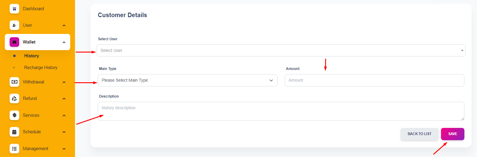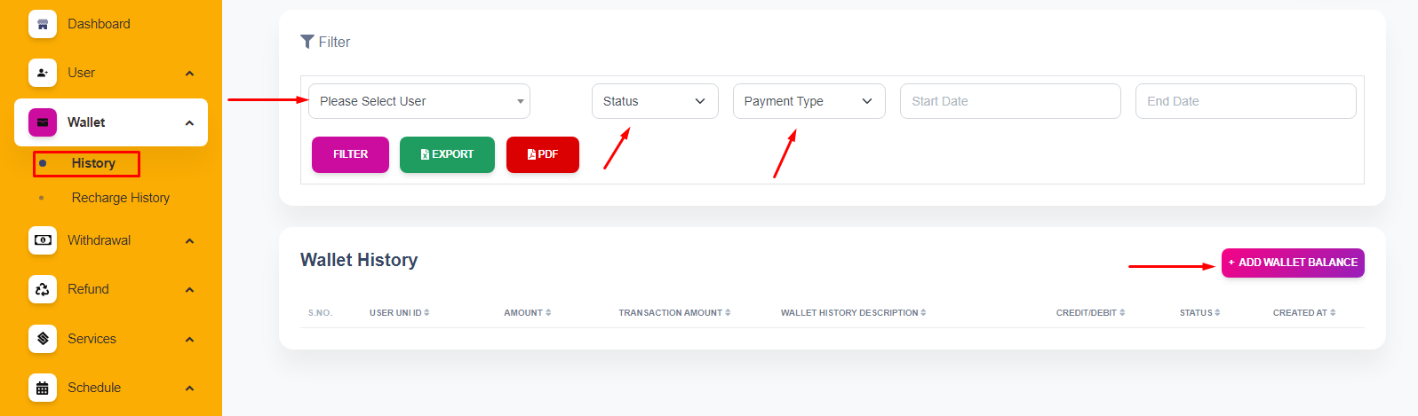 To review the history of both the Astrologer and Customer, you can conveniently access it within the Wallet section of the app. Additionally, you have the capability to debit and credit the balance from this section.
