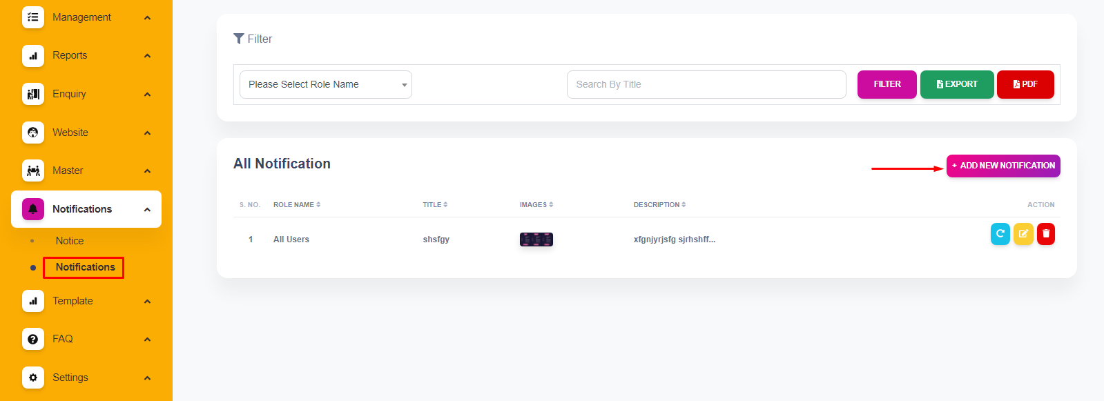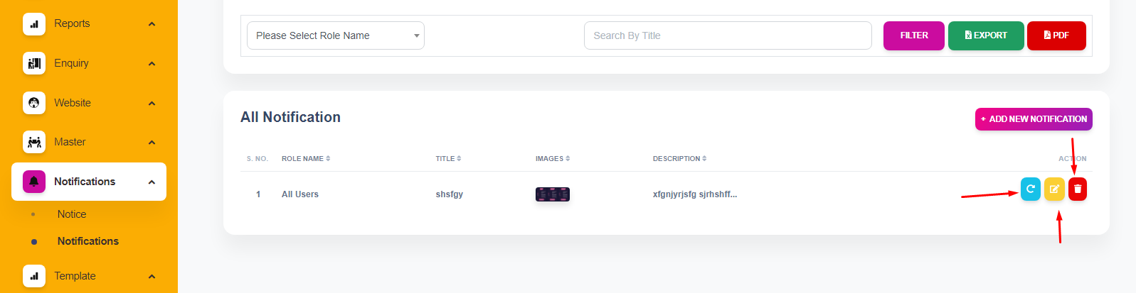 Additionally, you have the option to modify and resend the notification if needed, or you can select to delete it.