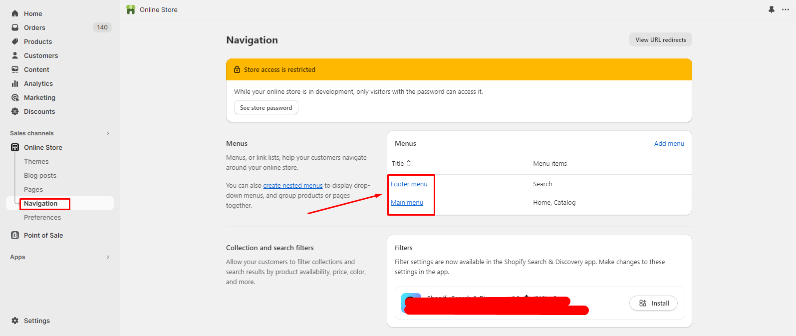 Go to the “Online Store” options in your Shopify admin.