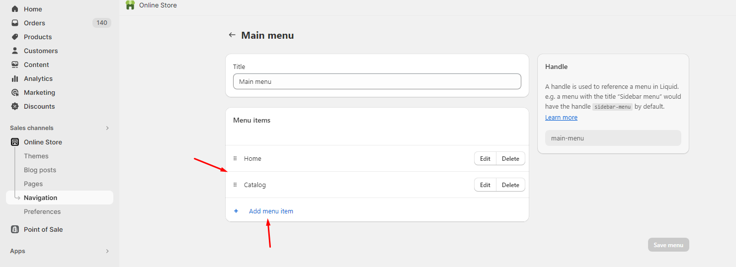 You will access the page where you can manage your main menu and footer menu.